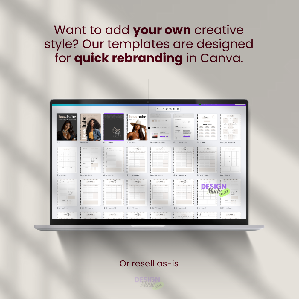 If you thrive on reselling planners, our "Boss Babe" 2026 Digital Planner is essential. Created for the modern, stylish woman who values both flair and practicality, it combines chic design with robust planning features.