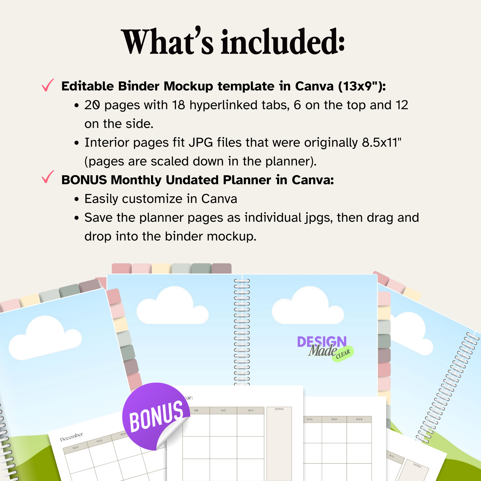 - 📂 Editable Binder Mockup template in Canva, 13x9 inches,